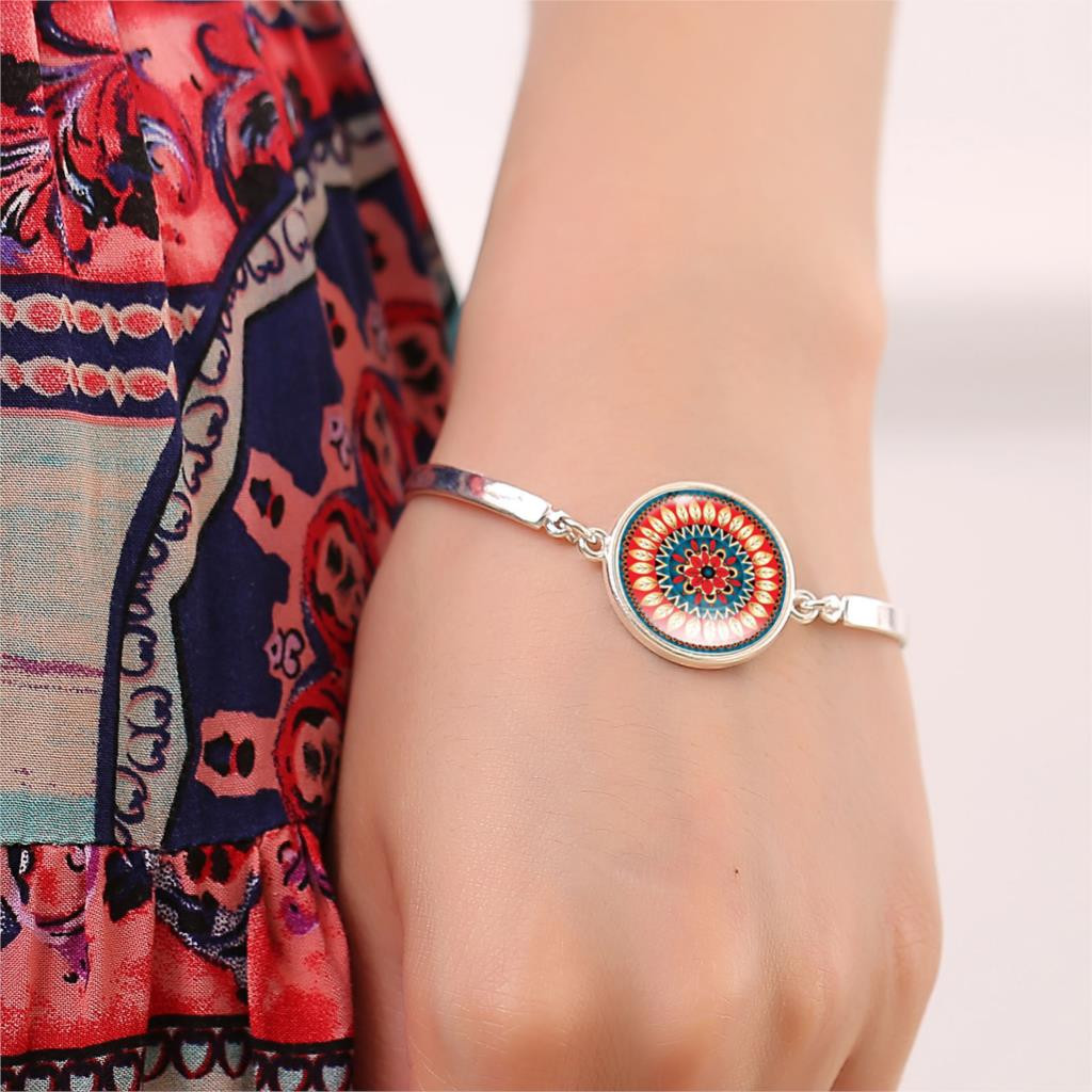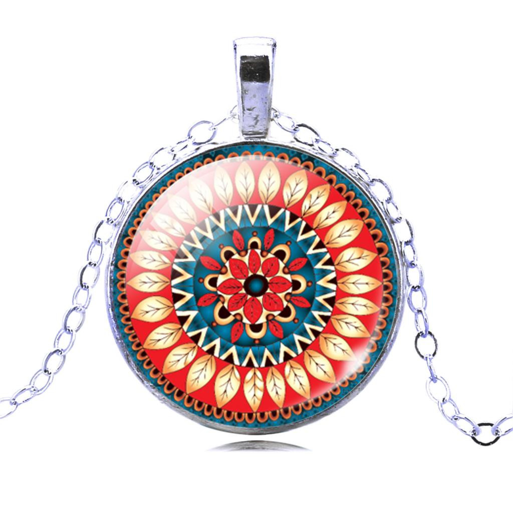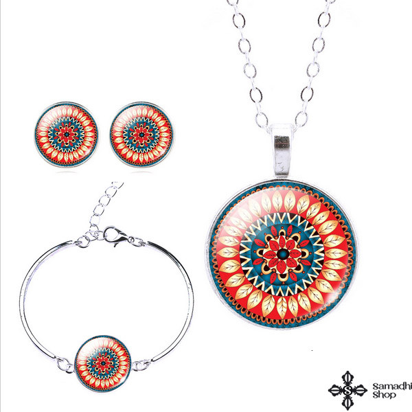 3 részes üveg mandala ékszer szett (nyaklánc + fülbevalók + karkötő)