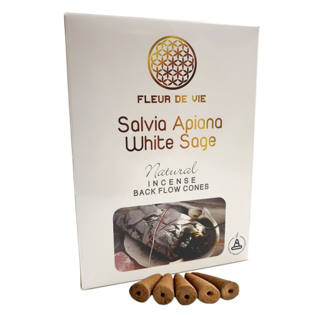 Fleur de Vie Fehér Zsálya Visszaáramló (lefelé folyó) füstölőkúp prémium masala