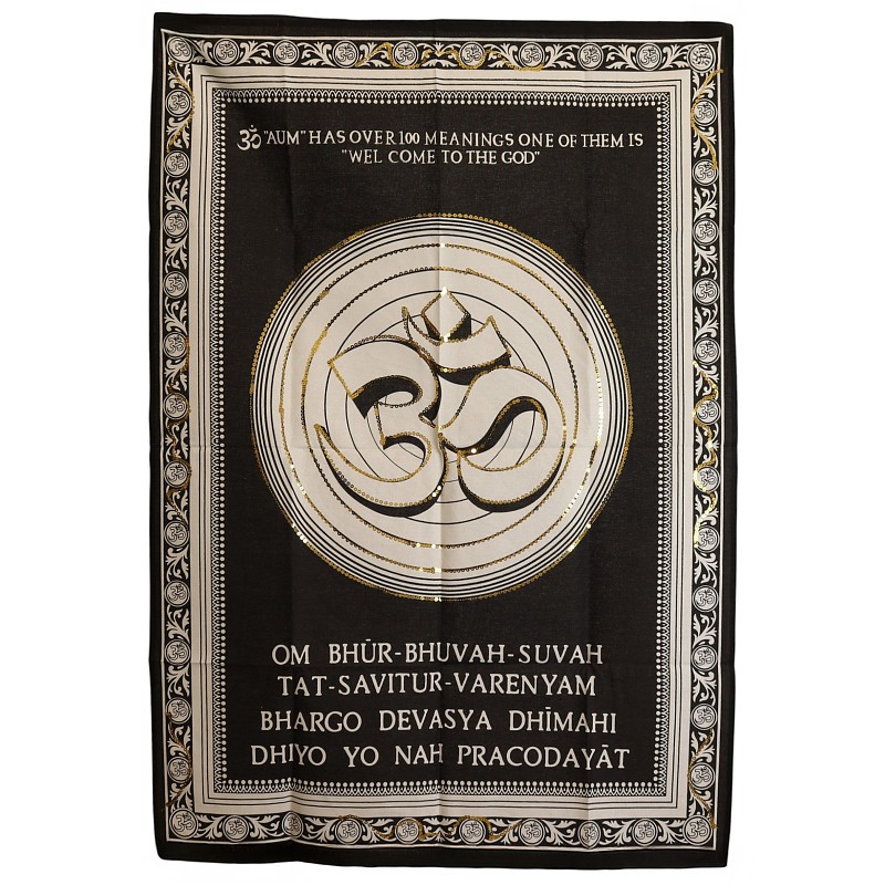Gyönyörű faliszőnyeg pamutból, Gayatri mantrával.
