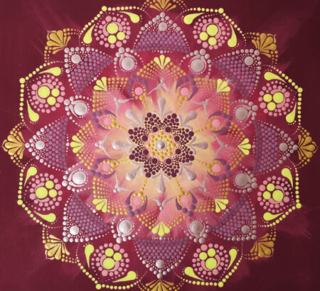 Technika: akril festék festővásznon, lakkal védve a mandalát, keretre feszítve.