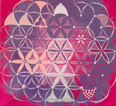 Technika: akril festék festővásznon, lakkal védve a mandalát, keretre feszítve.