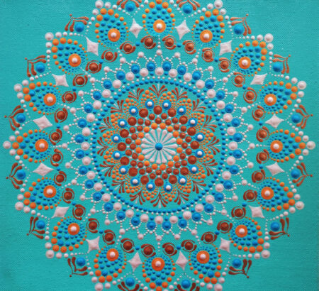 Egyedi, teljes mértékben kézzel festett mandala kép.