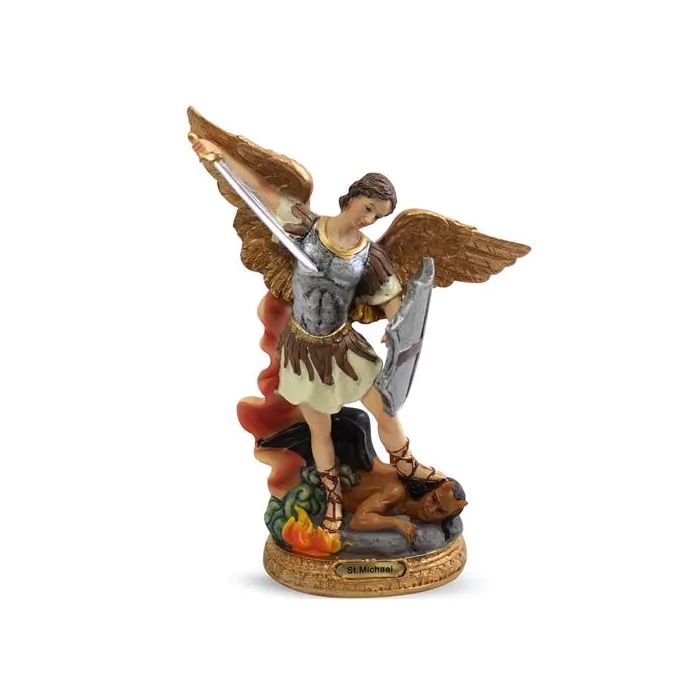 Gyönyörű kidolgozottságú Szent Mihály arkangyal szobor. Magassága: 20 cm. Anyaga: műgyanta.