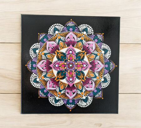 A mandala festmények akril festékkel készülnek festővászonra, lakkréteggel vannak védve, és fa keretre vannak feszítve. Így minden további bíbelődés nélkül azonnal falra is akaszthatóak.